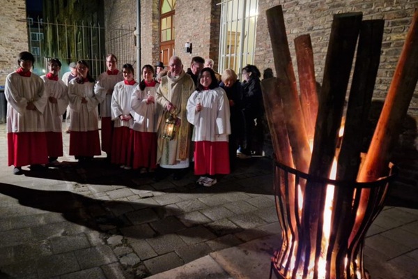 Ostermesse in Heilig Kreuz anschließend Osterfeuer auf dem Pfarrhof. Hier werden Ostereier, Brot und Getränke gereicht Zuvor um 15:00 Fahnen hängen und Feuerkorb und Eierkörbe vorbereiten