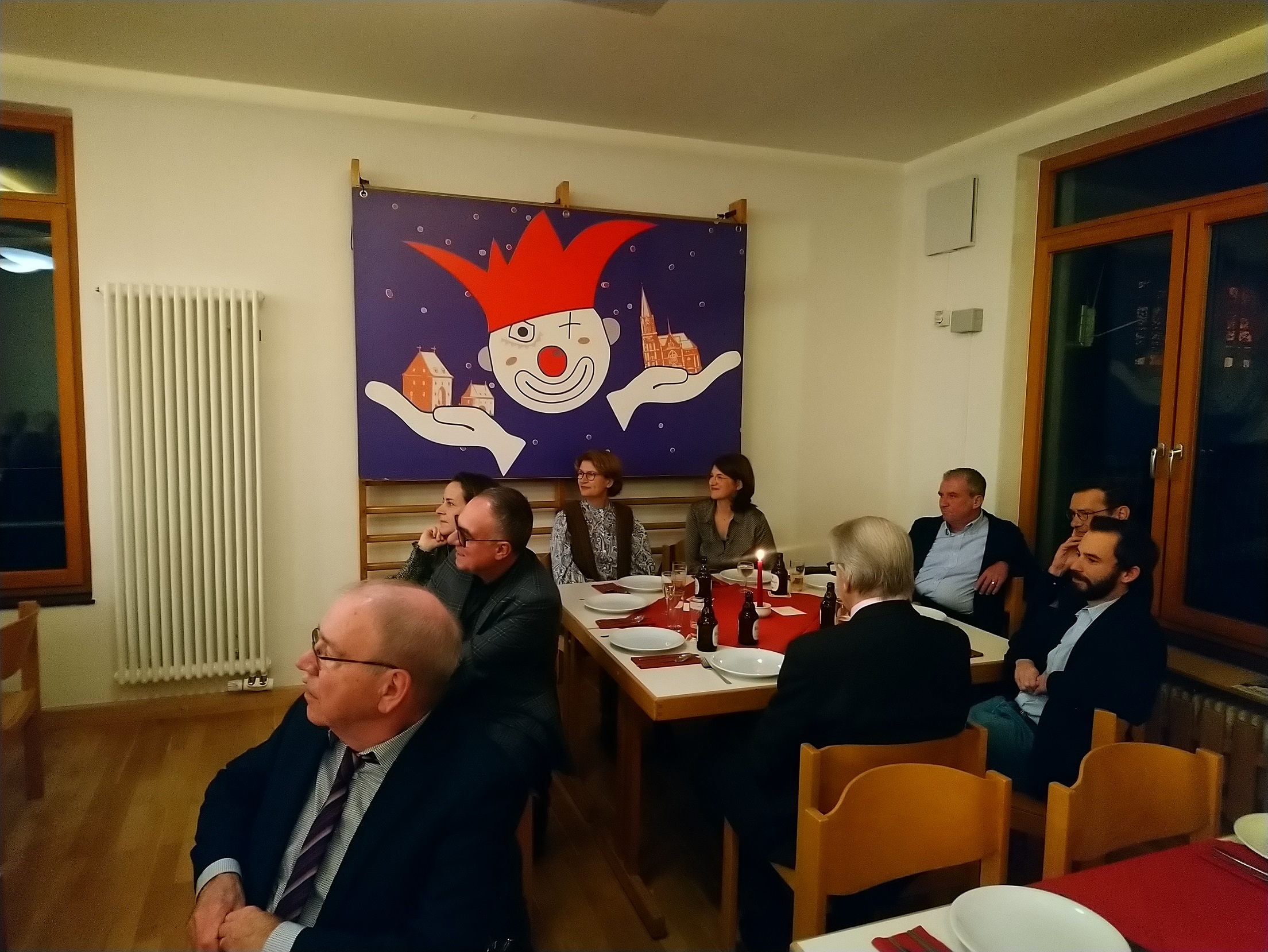 Noch bis in die späten Abendstunden sind die Gäste geblieben, bevor der unterhaltsame Abend zu Ende ging. Bedanken möchten wir uns bei der Servicekraft Clara, die die Gäste mit Getränken versorgte, unseren Freunden Peter und Paul von der Fidelen Aquisgrana hinter der Theke sowie der Küchenhilfe Ismail; allesamt hervorragende Unterstützer. Ein besonderer Dank gilt auch der Lebenshilfe Aachen, die erstmals die schmackhafte Zubereitung des Essens übernommen hat, nachdem zuvor über viele Jahre unser Mitglied Hans Gillessen als „Bocuse va de Krüzzbrür“ die Gäste bekocht hatte.