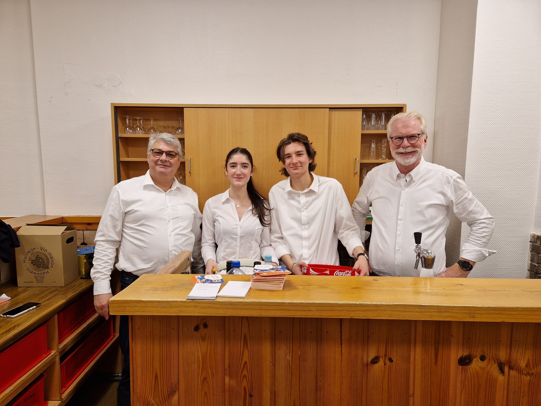 Dass der Abend im Gemeindesaal Heilig Kreuz zu einem schönen Abend wurde, verdanken wir auch den im Hintergrund wirkenden Unterstützern, den beiden Servicekräften Marie und Jan-Hendrik, der Thekenmannschaft Peter und Paul und der Küchenhilfe Ismail.