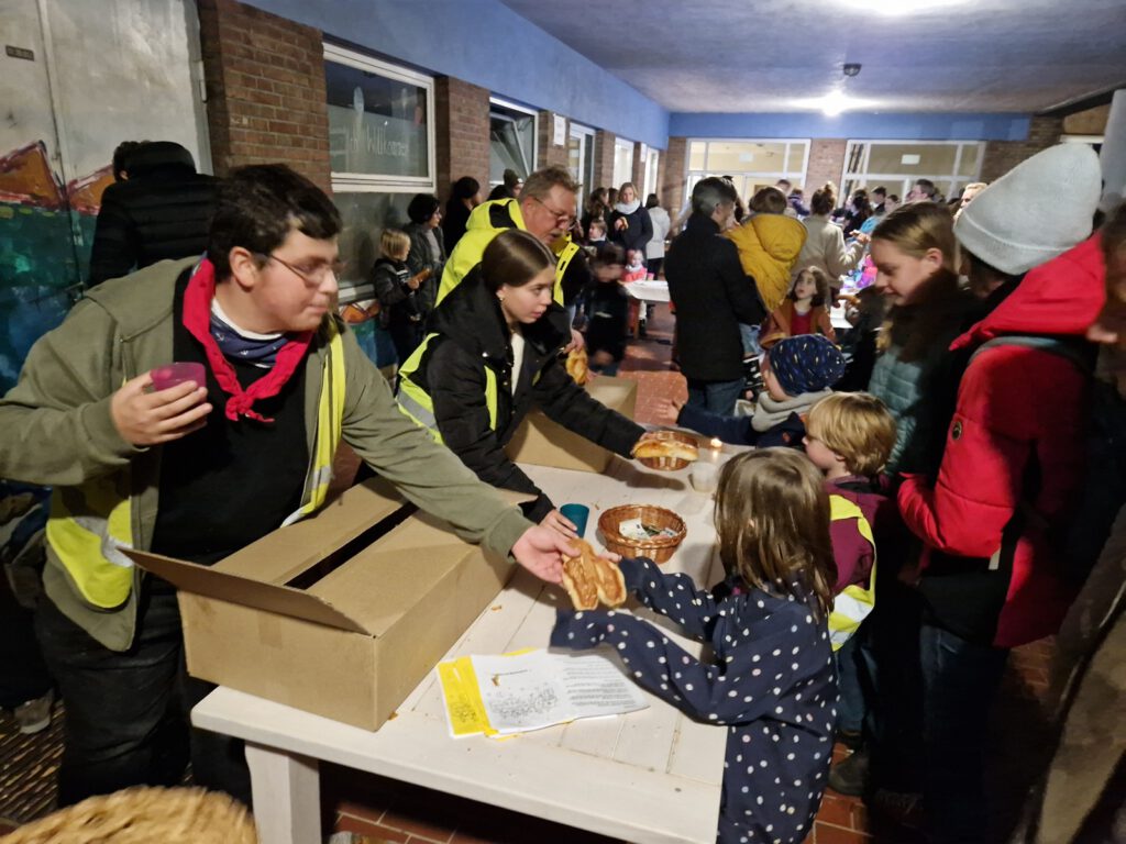 Aber auch Vertreterinnen und Vertreter der Schule am Lousberg, der Elternpflegschaft und der Kita haben unterstützend mitgewirkt. Bereits im Vorfeld hatten sie sich zu Optimierungsmöglichkeiten der Gestaltung mit eingebracht. Dies betraf u.a. die gruppenweise Aufteilung in der Kirche und die entsprechende Aufstellung in der Kreuzherrenstraße, die Möglichkeit des Mitsingens der Martinslieder sowie die Flächennutzung auf dem Schulhof inklusive der Weckmann-Verteilung.