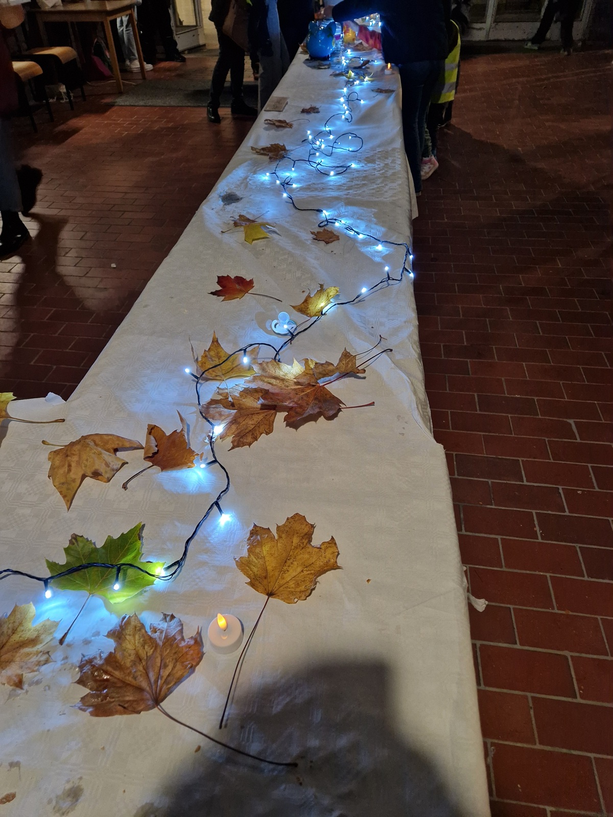Neben dem ganz großen Dank an die DPSG Stamm Heilig Kreuz auch ein herzliches Dankeschön an die mithelfenden Eltern, die Polizei, den MHD, an die Eilendorfer Stadtpfeifer, an Martinsreiter Ralf Schmetz, an F.J. Billen, an den Hausmeister der Grundschule, an die Weckmann-stiftenden Bäckereien Nobis und Kaussen und allen, die am Ende des Martinszugs auf dem Schulhof so fleißig gespendet haben.